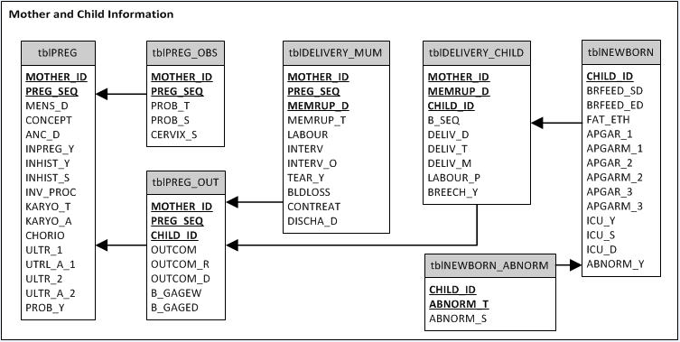 | tblDELIVERY_MUM | holds delivery information related to the mother |